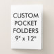Custom printed personalized 9" x 12" POCKET FOLDERS (sold in sets of 5) Blank Template. Design, create, make your own. Your photo, image, text in edge-to-edge full color print, individually designed, on the front cover, back cover, and the inside of the folder. Made from 12 point semi-gloss paper, 4" deep pockets on inside, with a business card (3.5” X 2”) slit on left pocket.