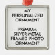 Custom Personalized PREMIUM 2" SQUARE SILVER COLORED METAL PHOTO ORNAMENT. Your full color printed photos or designs protected with a waterproof and UV-resistant coating.