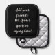 Cute or funny quote oven mitt. Inspire yourself with an inspirational quote or saying, a great way to encourage and motivate yourself around the house in the kitchen . Black background with handwritten style white font makes a great birthday gift for women, for mom, boss, or just for friendly reminders and home decor while cooking, baking, grilling on the bbq or just for fun.