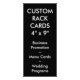 Custom printed personalized 9" x 4" RACK CARD with EXAMPLE OF BLACK BACKGROUND PRINT (change to any color or clear) Blank Template. Design, create, make your own rack cards, menu cards, wedding programs, promotional hand-outs. Your photo, image, text, logo in high quality, full-bleed, full color print on both sides of the rack card. 4"l x 9"w (portrait) or 9"l x 4"w (landscape) 100 lb. white card stock with a gloss finish.