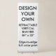 Custom printed personalized 33" x 84" VERTICAL RETRACTABLE BANNER Blank Template (33" x 79.5" visible). Design, create, make your own. Your photo, image, text in full color edge-to-edge latex print with matte finish on 12 oz block-out banner material. Top panel clasp to secure banner in an upright position. Silver Neschen banner stand that prevents tilting or leaning, 7.5 lbs in total, light weight and portable for easy set up and transportation with carry bag included. Best for a trade show, corporate event, presentation, exhibition, expo.