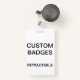 Custom printed personalized 3.38" x 2.13" VERTICAL RETRACTABLE CLIP BADGE Blank Template. Design, create, make your own. Your photo, image, text, logo, graphics in full color edge-to-edge print on the front and the back, horizontal or vertical. Made of PVC plastic, durable, won't fade or tear. Retractable, Metal Clip, Lanyard Necklace, or Just Badge.