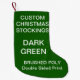 Custom printed personalized SMALL 9" x 16" DARK GREEN BRUSHED POLYESTER CHRISTMAS STOCKING Blank Template. Design, create, make your own. Your photo, image, text, logo, graphics in full color print on both sides of the stocking (Single sided print also available). Polyester fabric options: Faux Linen, Brushed Polyester, Coral Fleece. Sturdy sewn-in loop for hanging, machine washable. Made in USA.