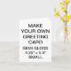 Custom printed personalized SMALL SIZE 4.25" x 5.5" PORTRAIT SEMI-GLOSS (PHOTO) GREETING CARD Blank Template. Design, create, make your own. Your photo, image, text, logo, graphics in full color CMYK print on each side of the card - inside and out . Printable area on the back of the card is 5" x 7". Standard white envelopes included. SEMI-GLOSS: A thin, smooth, bright white paper with semi-gloss finish designed for photo printing with the optimal color vibrancy. 40% recycled post-consumer content. Made and printed in the USA. Best for wedding, birthday, anniversary, retirement, get-well-soon, and Christmas cards.