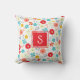 Colorful fun happy flowers pattern throw pillow design. With room to customize or personalize with family monogram of your choice. Cute, elegant, chic and original gift for the girly girl or classic shabby chic cottage country style lover. Classy, fun and fashionable decorative interior home decor for those who love decorating their master or guest bedroom, nursery or children's bedroom, living or family room, woman cave, dorm, condo, studio or apartment with floral accents.