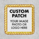 Custom personalized polyester SQUARE PATCH template blank, with GOLD MYLAR border stitching (choose from 13 colors or laser-cut edge).