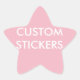 Custom printed personalized 20 GLOSSY FINISH 1.5" STAR SHAPED STICKERS (EXAMPLE OF PINK BACKGROUND PRINT) Blank Template (also available in Matte finish). Design, create, make your own. Your photo, image, text in full color full-bleed edge-to-edge print on the front of the sticker. 20 stickers per sheet. Printed on white acid-free paper, with scratch-resistant front and easy peel-and-stick back.