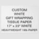 Custom printed personalized THICKER HEAVYWEIGHT 18lb 17" x 23" (LARGE SIZE) WHITE TISSUE PAPER FOR WRAPPING GIFTS Blank Template. Design, create, make your own. Your photo, image, text, logo, graphics in edge-to-edge full color print. 10lb paper also available in 7 colors, comparable to standard tissue paper. Best for wrapping jewelry, small gifts, party favors, wine and champagne bottles, and padding out gifts boxes.