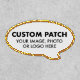 Custom personalized polyester THOUGHT BUBBLE PATCH template blank, with GOLD MYLAR border stitching (choose from 13 colors or laser-cut edge).