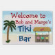 Welcome your guests to your tiki bar party with our custom sign. Make it yours by adding your name or custom text. Features all our original artwork. Stand not included.