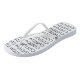 Custom Personalized Women's Thong Flip Flops. Unisex. All regular sizes. THIN WHITE Straps & WHITE soles. 2 footbed & 4 strap color options in thin strap style. 100% rubber thong style. Unisex. Similar to Havaianas®. Made in Brazil. Printed in the USA. Personalized gifts for a birthday, Christmas, Valentine's Day for her (girls, teenager, teenage girl, young woman, girlfriend, young mother, sister, daughter, friend).