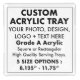 I am delighted with the quality of my two acrylic trays. They are very, very sturdy - no need to worry about carrying heavy food and drinks. They are absolutely gorgeous! I'm proud to show off my photos embedded in the trays. Thank you for adding this line to your products! My photo is 100% perfect! The color os accurate and there are no blurred edges. Awesome!