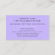 A fresh and modern lavender business card designed for pet sitters, dog walkers, and animal care providers. Featuring a minimalist layout with a subtle paw accent and customizable photo, this professional yet playful design is perfect for building trust with clients. Ideal for pet care professionals offering dog walking, cat sitting, or vacation pet care services.