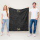 Custom Pet Name Black Botanical Gold Script fleece blanket with a monogram and script name.