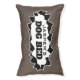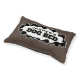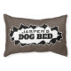 Custom pet name dog bed pillow with ripped hole design. Zippered pillow cushion with funny graphic. Cool gift idea for new pet owner and dog lover. Available in small and large size with zipper cover. Indoor and outdoor options. Modern print with bold typography. Brown or custom color.
