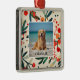 Custom Pet Name Photo Holly Berries Holiday Metal Ornament