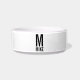 Custom pet bowl featuring pet's name with monogram in bold modern sans serif font style.