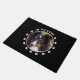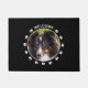Destei's personalizable pet photo template design featuring some dog paw prints on the edges and a personalizable text area on the top that now reads: "Welcome". The photo is placed in the middle in a round shape together with a white border. The background color is black and the dog paw prints and text color is white. You can, however, change the background color, the paw prints color and the color of the text to any other color, if you wish.
