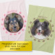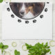 Destei's personalizable pet photo template design featuring some dog paw prints on the edges and a personalizable text area on the top. The photo is placed in the middle in a round shape together with a thin black border. You can change the color of the paw prints and the text to any other color, if you wish.