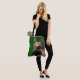 A large custom tote bag featuring an all-over print of a personalized pet photo of a dog.