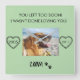 Celebrate the memory of a beloved companion with this customizable pet tribute design. Your pet’s photo is placed at the center, framed by two paw‑print hearts — one for the date of birth and one for the date of passing. Above the photo, the tender words “You left too soon, I wasn’t done loving you” offer comfort and remembrance. Below, your pet’s name appears in a graceful script with two paw prints for a loving finishing touch.