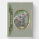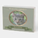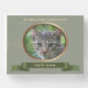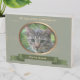 Kaki green oval frame with a copper piping for photo. Design on wooden box sign with ribbon (image) for the name of your beloved companion. You can easily change photo and text (color, font, size and position) by clicking the personalize or customize button.