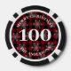 Personalized Christmas-themed poker chips with a custom photo on one side and your own text (family name, holiday message, established year, etc) on the other side with a red and black plaid background with snowflakes. This design includes the number 100, but it can be edited with any value amount.