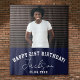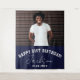 Happy Birthday! Custom Photo Booth or Party Wall Backdrop as birthday party wall decor! Space for 1 huge photo with your name, message, and birthday date. This layout features a modern, sporty typography design as well as a cool signature script. This is the navy blue version.