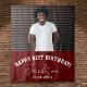 Happy Birthday! Custom Photo Booth or Party Wall Backdrop as birthday party wall decor! Space for 1 huge photo with your name, message, and birthday date. This layout features a modern, sporty typography design as well as a cool signature script. This is the maroon red version.