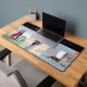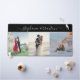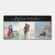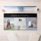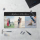 Personalized large desk or workspace mat with 3 of your own photos and custom name text in a modern trendy calligraphy swirl font.