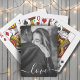 These custom playing cards feature your favorite photo with a white "love" script overlay design that includes elegant flourishes. The white text can be modified to your favorite saying, font or color.