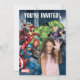 Customize this Avengers themed invitation by uploading your child's photo and adding the party details in the template fields provided!