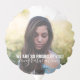 Custom graduation balloon with photo, name, and graduation year with a border of any school color you choose, shown in classic black and white.