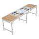 Not that I've had experience to buy that many beer pong or ping pong tables in my life, but I know a good quality product when I see it! This beer pong table is sturdy and solid and still lightweight enough to be portable. It folds and unfolds smoothly for easy storage or setup. From order to arrival here, the time was half of what was estimated, and that was during the holiday season. And -- most importantly -- the recipient LOVED it! I would definitely purchase this product again or other products by the maker Hampton Technologies , should an occasion to do so arise. The printing is beautiful! The blues and reds are deep and rich and the white "chalk look" is clean and crisp,. The photo (taken in low light) doesn't really do it justice. We know it's printed, but take a step back, and it really does look like chalk on a blackboard. To get the blue background like we did (instead of the traditional green chalkboard background), use background color #26306A. :)