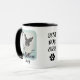 Looking for a unique way to celebrate your love for your furry companion? Our custom dog photo mug is just what you need! Personalize it with a photo of the "best dog ever" and enjoy your favorite beverage in style. On both sides, it features a light green frame around the picture of the dog as well as a paw print with a heart in it and your dog's name in a script typography. In the middle, it features the quote "BEST DOG EVER." Further customizable by you, it's the perfect gift for you or any dog lover in your life!