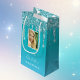A gift bag for a girly and glamorous Sweet 16, 16th (or any age) birthday. A teal, blue gradient background with faux glitter drips, paint dripping look. The text: The name is written with a modern white hand lettered style script. Tempate for a date and age 16. Personalize and add your own photo of the birthday girl. Can be used both for gift wrapping or as a party favor bag.