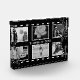 Film reels evoke feelings of nostalgia, this classic black and white design allows you to upload 6 photographs of treasured memories with your own message across the centre. Detailed with curved film reels at the sides. Looks great with black and white or colored photographs.
