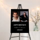A photo welcome sign for 2 persons, friends, siblings, twins. Black background, white text. Personalize and add 2 photos, names and date(s)