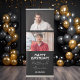 A photo welcome sign for 2 persons, friends, siblings, twins. Black background, white text. Personalize and add 2 photos, names and date(s)