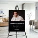 A welcome board for a 40th birthday party. Personalize and add a photo, a name and age. A classic black background, white text.
