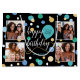 Create a stylish photo collage gift bag! Personalize the template with four favorite photos, the recipient's name, and birthday age. A fun design featuring round confetti, balloons, and "Happy Birthday" in a trendy script. Perfect for family, kids, friends, and pets! Printed colors: teal green, blue, black, white and gold.