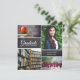 Share your excitement for your graduate's special achievement. Use this easy to use template for the graduation announcement card with four places for pictures and include Class of 2020, the school name and your graduate's name. A square card reminiscent of a square grad cap top and chalkboard background for the class, school feel.