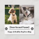 This is a sleek, square business card template for a dog kennel, boarding, or pet-sitting service. The front features a two-photo collage, ideal for showcasing happy, healthy dogs. Below the photos, there's a space for your kennel's name and a tagline. The back is a simple, clean layout with all the essential contact details—your name, phone number, website, email, and social media handles. A cute paw print with a heart inside adds a charming touch. This modern and unique square design will help your business stand out.