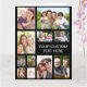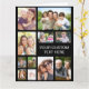 A custom photo collage keepsake large card for any occasion (birthday, engagement, father's day, mother's day, anniversary, etc). Personalize with eleven photos of family, friends, pets, memories, events, travels, etc. and add one or two lines of text in simple white typography against a black background. On the inside, add your personalized message. The colors of the background and text can be changed by selecting to edit in the design tool.