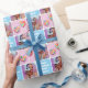 Custom Photo Collage Modern Retro Blue Pattern Wrapping Paper