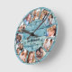 Custom Photo Collage Natural Wood Family Name Round Clock