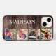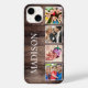 Create your own personalized 4 photo collage phone case with your custom images on a rustic dark brown farmhouse style wooden plank background. The design also features your name or monogram. Add your favorite photos, designs or artworks to create something really unique.