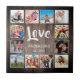 Create your own personalized 12 photo collage ceramic tile with your custom images on a rustic farmhouse style wooden plank background. The design also features your family name, established year and a "Love" handwritten script. Add your favorite photos, designs or artworks to create something really unique. To edit this design template, simply upload your own images and edit text fields as shown above. You can easily add more text or images, customize fonts and background.