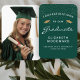 Help your graduation guests keep cool during the ceremony or party with these custom photo graduation hand fans, featuring the words "Congratulations to our Graduate" in white text on a dark green background. The word "Graduate" appears in a graceful handwriting-style script. A pair of gold faux glitter mortar board caps and a scattering of gold confetti decorate the top portion of the label. Personalize one side with your grad's name, school, and year of graduation. Easily replace the sample image on the other side with a photo of your grad.