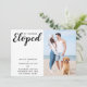 Let your Best Dog announce your wedding with this super cute 'My Humans Eloped' dog wedding announcement card. Send these elopement wedding announcements to family and friends to let them know of your good news! Customize with your favorite photo, and personalize with names, date, and wedding location. This wedding dog announcement will be a hit with your family and friends COPYRIGHT © 2020 Judy Burrows, Black Dog Art - All Rights Reserved. Custom Photo Dog Wedding Elopement Announcement